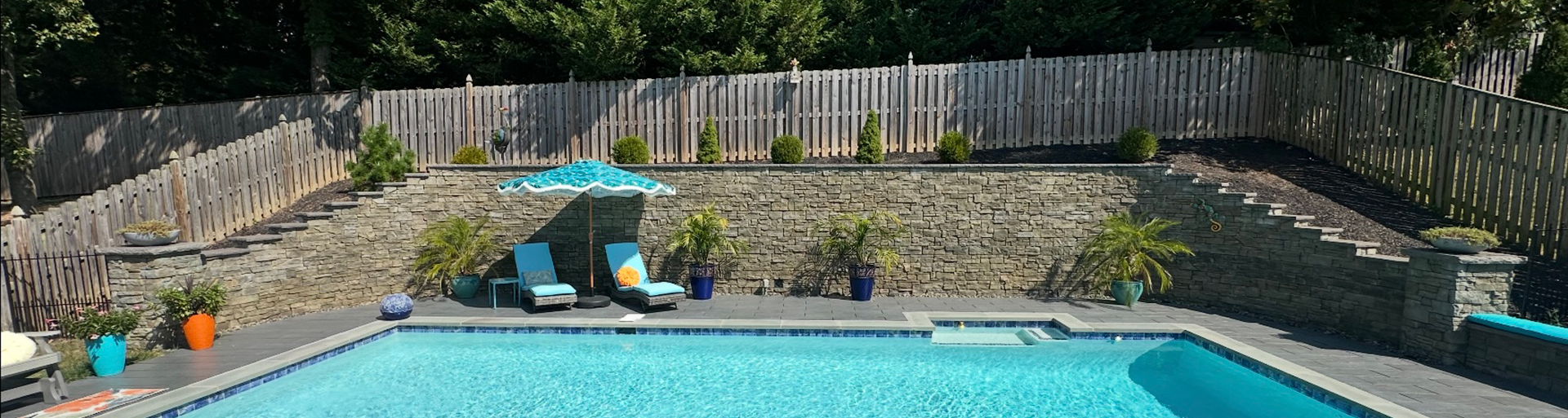 Multi-level pool decks solve two common problems – they create separate zones for different activities and make sloped yards more usable. We see this approach work especially well on the rolling terrain common in Baltimore and Howard counties.